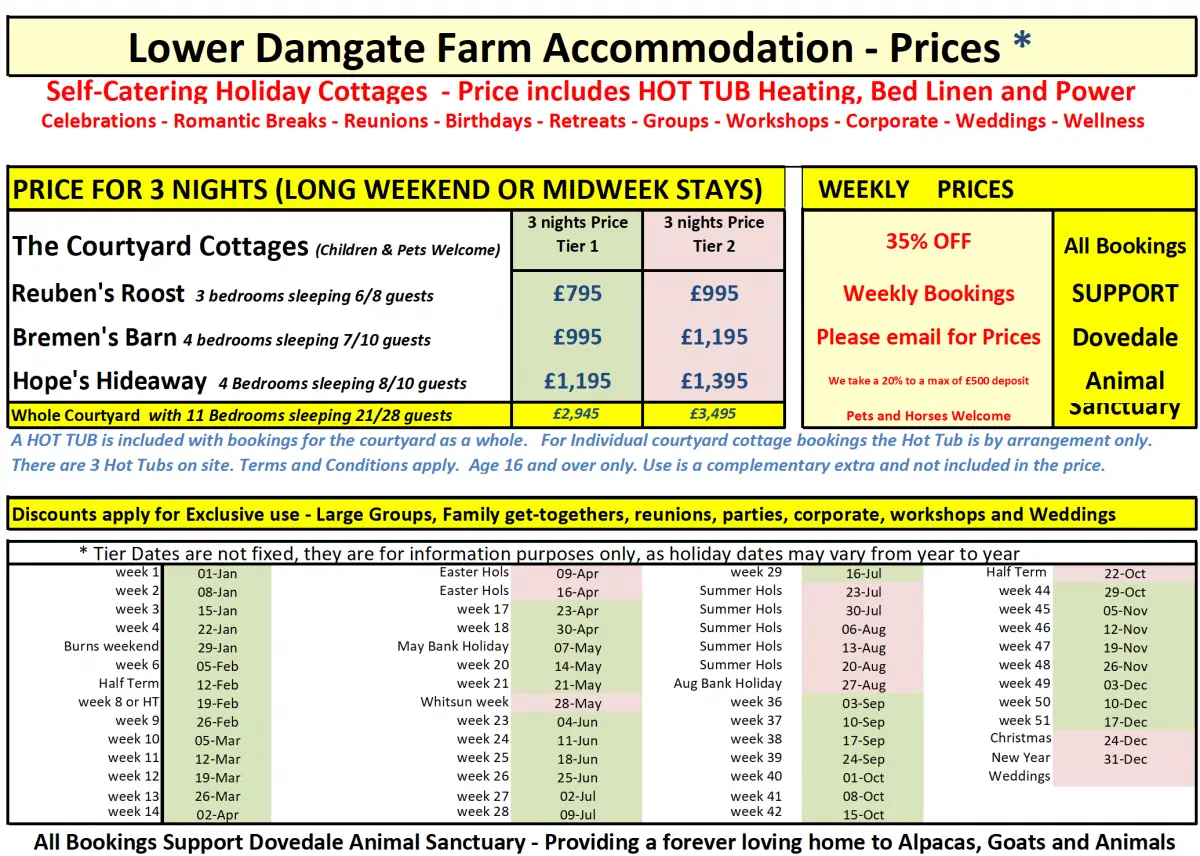 Discounts apply for booking more than one cottage, and these can be hired individually or together depending upon your needs.